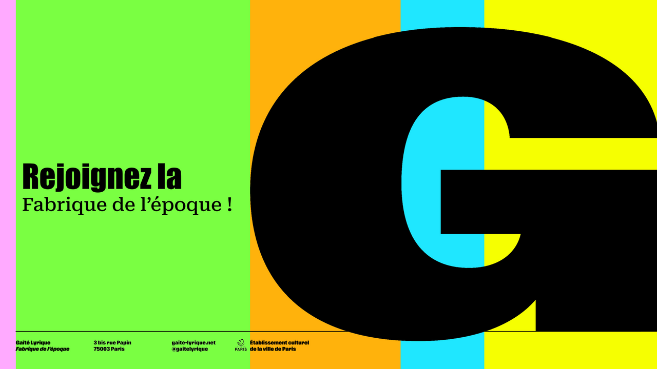Axé sur la création et l'engagement, la Gaîté Lyrique accueille aux 6e et 7e étages un espace de travail partagé réunissant une communauté d'acteurs et d'actrices engagées autour de ses valeurs culturelles, environnementales, sociales, sociétales. Plus qu'un espace de travail, La Gaîté Lyrique — Fabrique de l'époque invite les structures résidentes et incubées à rejoindre la dynamique collective en interagissant avec la programmation et les grands projets de la Fabrique.